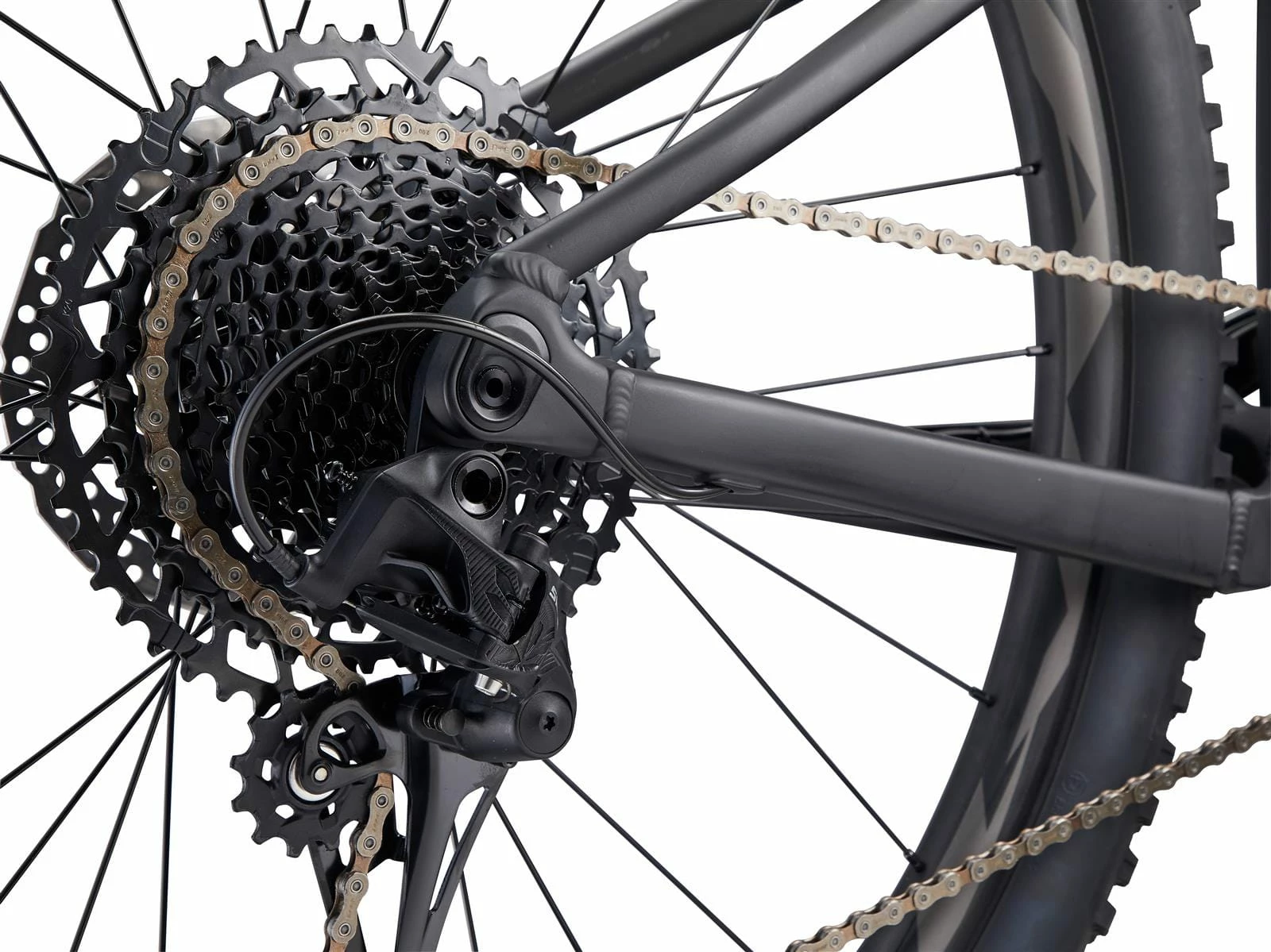 Cadre : cadre AluxX, FlexPoint arrière, 120mm de débattement, 12x148mm Max. Dégagement des pneus : 2.4″ Max. Taille de plateau : 32T
