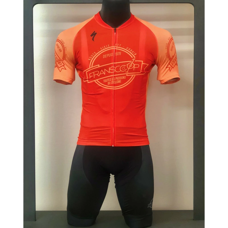 Conçu en collaboration avec Yann Gobert pour la création et Specialized pour la fabrication, ce maillot de vélo reprend les qualités de respirabilité, d’élasticité et de résistance au UV de catégorie PF30 du jersey Specialized SL tout en se parant des couleurs de Franscoop en édition originale limitée.