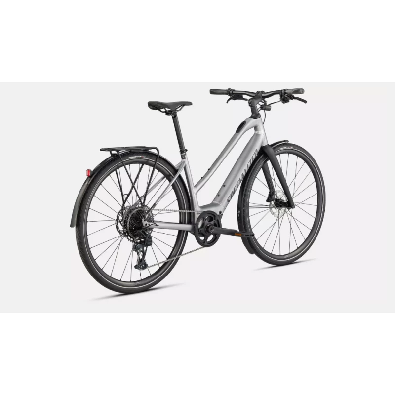Cadre en aluminium E5, géométrie spécifique Fitness / Transport urbain, moteur montage central, batterie totalement intégrée dans le tube diagonal, câblerie interne, compatible avec garde-boue et porte-bagages, logo réfléchissant pour plus de sécurité.